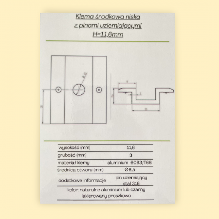 Druckklemme aus Aluminium 6060, 11,6 mm, M8-Loch für M8-Schraube – Für Photovoltaikmodule